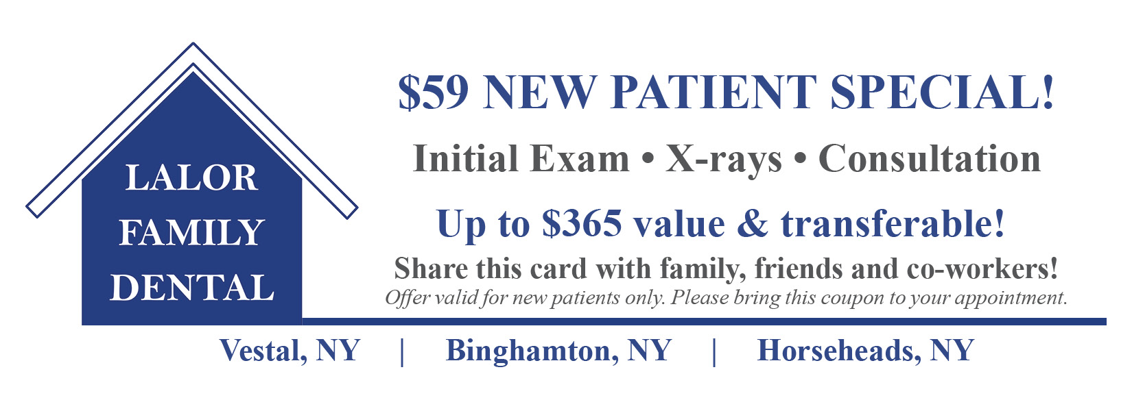 We are excited you chose Lalor Family Dental as your primary dental provider! Please call (607) 754-2217 to schedule your first appointment if you have not done so and be sure to fill out the paperwork below before your first visit!